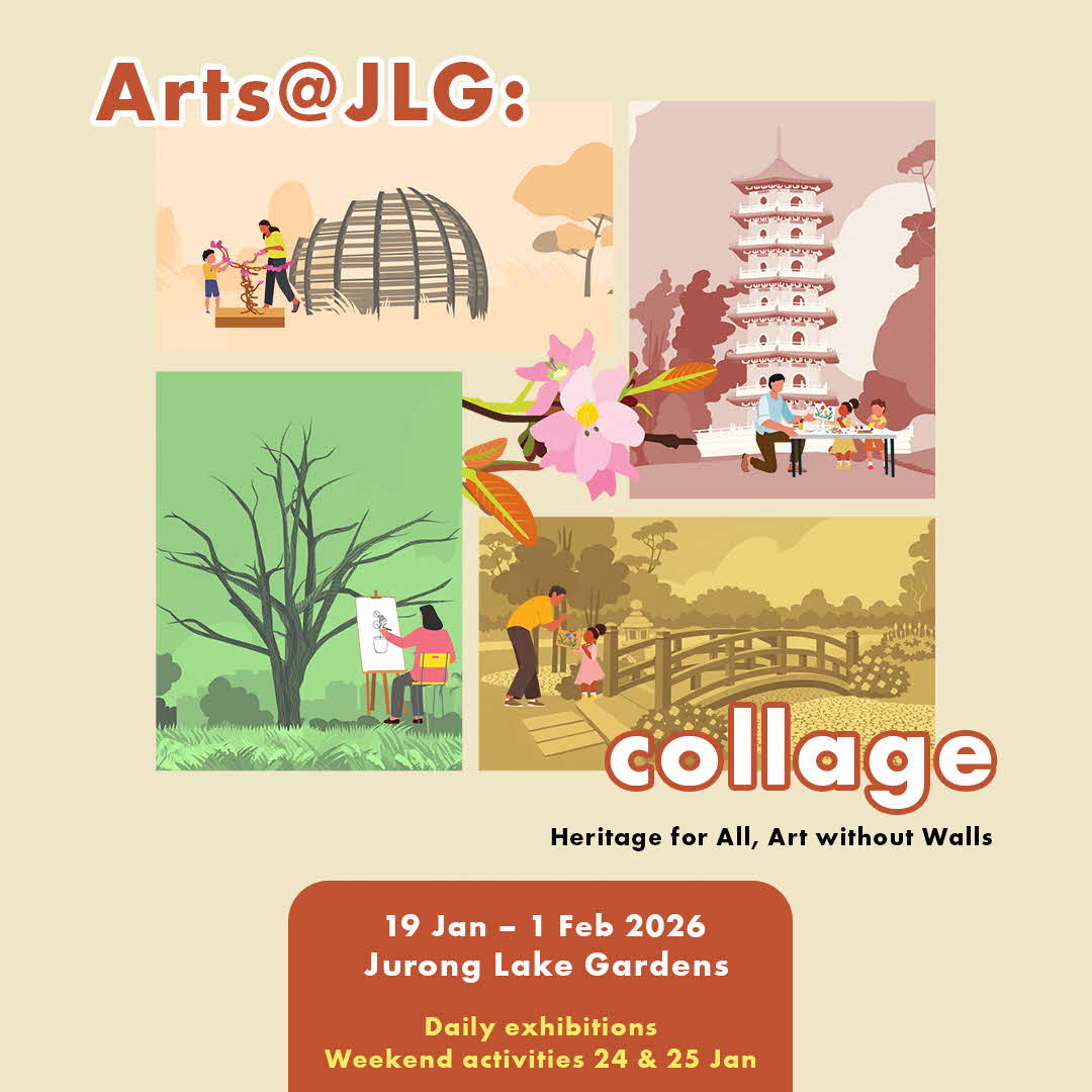 Arts@JLG: collage is a programme held from 19 January - 1 February 2026, as part of Singapore Art Week. It transforms Jurong Lake Gardens into an open-air gallery where visual arts flourish through community participation. Set amidst natural landscapes, the event invites visitors of all ages to explore the connection between art and nature in an open, interactive environment.